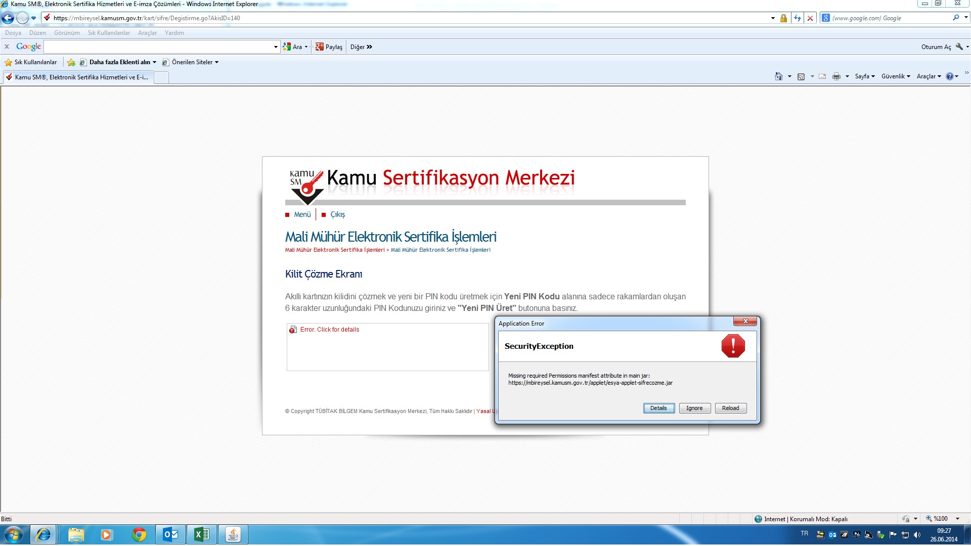 SoruŞifremiz kilitlendiği için yeni şifre almak istiyoruz. Ancak ekteki gibi java hata veriyor. bununla ilgili çözüm önerisi olan var mıdır?