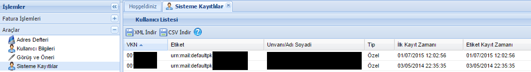 | Konu | 0012928: E fatura kullanıcı kayıt tarihleri | |||||||