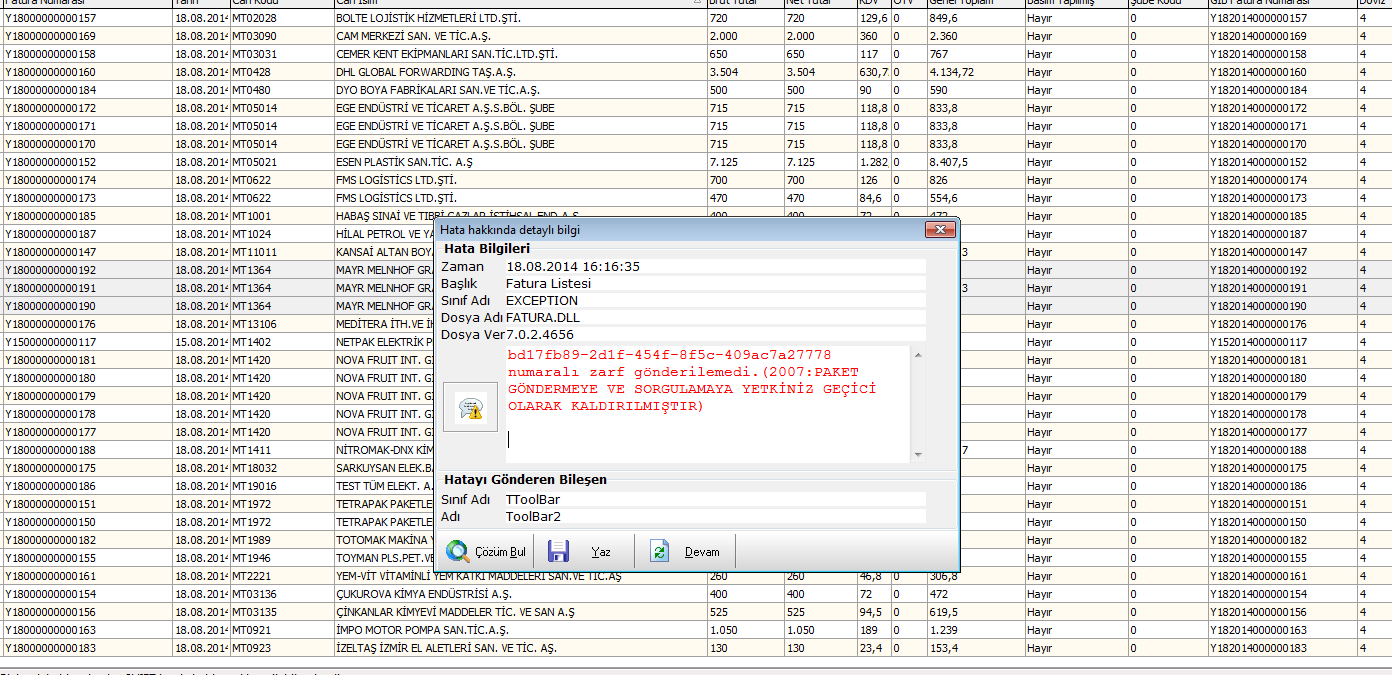 | Konu | 0014279: E-FATURA GİTMİYOR | |||||||
