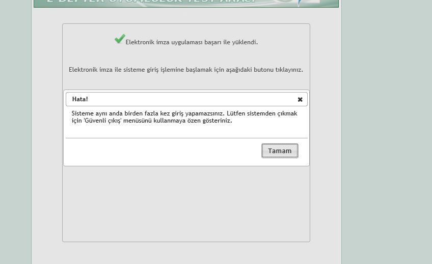| Soru | Merhaba, Dünden beri https://uygtest.edefter.gov.tr/edefter/ [^] sitesinde test yapmakta güçlük çekiyoruz. Sisteme ya giriş yapamıyoruz sunucularda bir problem oluyor ya da girebildiğimiz zamanlarda sistemden kendisi atıyor. Sunucularınız tekrar çalıştığı zaman ise güvenli çıkış yapmadınız uyarısı geliyor. Ekte resimleri paylaşıyorum. En azından bekleme süresini kaldırsanız herkes için iyi olmaz mı ? Bizim elimizde olmayan nedenlerden dolayı sisteme giriş yapamıyoruz. Saygılarımla, İyi çalışmalar. | |||||||