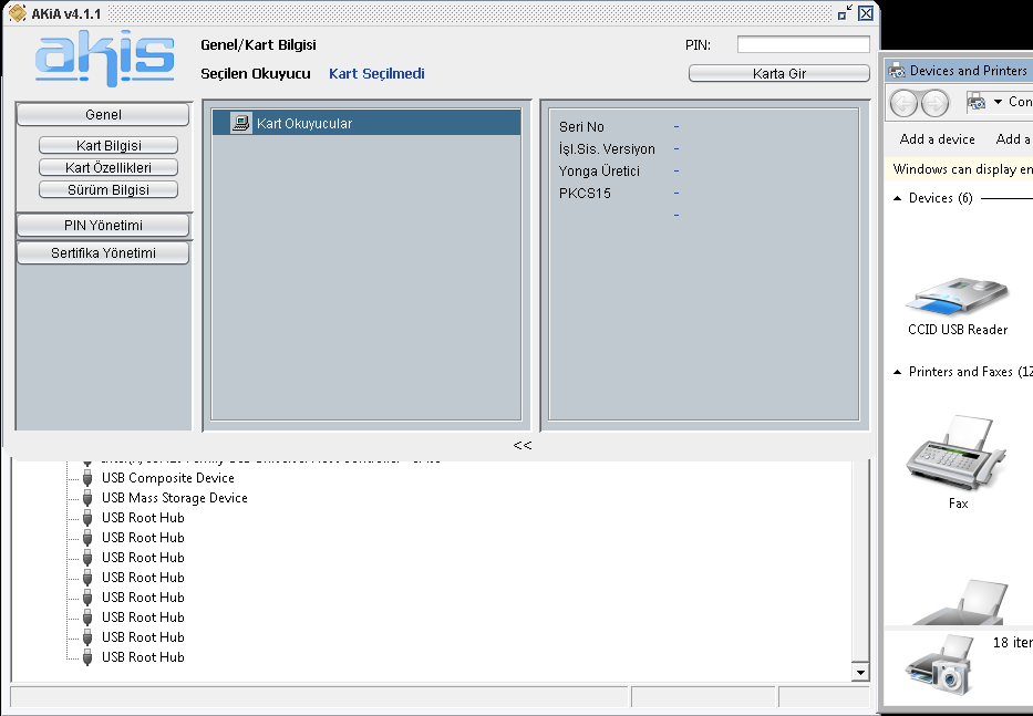 | Soru | E-fatura sistemini 1 adet bilgisayar kurdum ve masa üstü bağlantısı admin kullanıcısı ile girdiğimizde gayet güzel çalışıyor... Simkartı ve sertifikaları okuyarak portala bağlanabiliyoruz Fakat bu bilgisayara admin kullanıcısı ile Uzak masaüstü bağlantısı yaptığımızda (RDP) akis programı kart bulunamadı diyor. Dolayısı ile bizi portala bağlamıyor. Bu aşamada USB cihazı hep device hemde Usb hub olarak görebliyorum. Şeklen resimdeki gibi oluyor. Dolayısı ile farklı lokasyonlardan bağlantı vermek istediğim kullanıcılar sertifikaları görüntüleyemedikleri için portala bağlanamıyorlar.. Bu konuda getirilen bir sınırlama varmı? bu konuda çözüm yöntemi olarak yardımınızı rica edeceğim. | |||||||