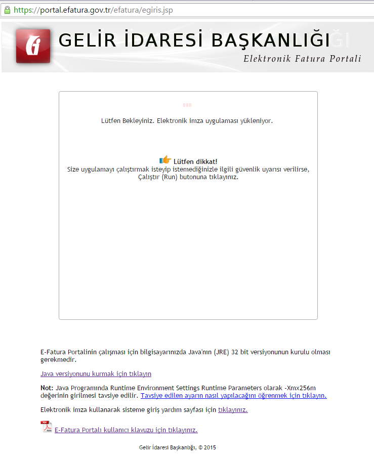 Merhaba, Google Chrome tarayıcısı (42.0.2311.90 sürümü) Java eklentisini engellemiş durumdadır (Kaynak: https://java.com/en/download/faq/chrome.xml [^]). Geçici olarak Java eklentisi Google Chrome tarayıcısı için aktifleştirmek istenirse şu bağlantıdaki bilgiler kullanılabilir: https://java.com/en/download/faq/chrome.xml#npapichrome. [^] Google Chrome'un güncellemesi ile birlikte Google Chrome tarayıcısı ile GİB-Portaline girişte sorunların yaşandığı gözlemlenmiştir. Bu nedenle Mozilla Firefox, Internet Explorer, Opera, Safari gibi farklı internet tarayıcıları ile portale giriş yapabilirsiniz. Girişte ve fatura onaylamada sorun yaşamıyorsanız ilgili Java sürümü ve tarayıcıyı kullanmaya devam ediniz. Mevcut Java sürümü ile diğer tarayıcılarda da sorun yaşamanız durumunda: * Mevcut Java sürümünü tamamen kaldırınız. * Java 1.7.0_65 sürümü için bağlantı adresi (bu bağlantıya portale giriş sayfasındaki "Java versiyonunu kurmak için tıklayın" bağlantısından ulaşabilirsiniz): http://www.oracle.com/technetwork/java/javase/downloads/java-archive-downloads-javase7-521261.html#jre-7u65-oth-JPR [^] İndirilecek dosya: Windows x86 Offline - 28.06 MB - "jre-7u65-windows-i586.exe" dosyasını indiriniz. * Yine Google Chrome ile girişte sorun yaşanabileceğinden Internet Explorer, Mozilla Firefox, Opera, Safari gibi farklı internet tarayıcıları ile portale giriş yapabilirsiniz. (Genel olarak 327 numaralı forum sorunun cevabına da bakabilirsiniz.) İyi günler. |