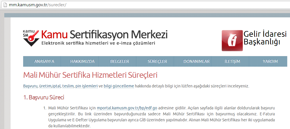 Merhaba, Mali Mühür Sertifikası, E-Fatura Uygulaması ve E-Defter Uygulaması Başvurusu işlemleri farklı ekranlar üzerinden yapılmaktadır: 1. Mali Mühür Sertifikası Başvurusu: https://mportal.kamusm.gov.tr/bp/edf.go [^] 2-A. E-Fatura Uygulaması Başvurusu: https://portal.efatura.gov.tr/efaturabasvuru/ [^] 2-B. E-Defter Uygulaması Başvurusu: https://uyg.edefter.gov.tr/edefterbasvuru/ [^] 01/01/2016 tarihinde E-Fatura ve E-Defter Uygulamasına dâhil olmak için: 1. (Mali mührünüz yoksa) https://mportal.kamusm.gov.tr/bp/edf.go [^] adresinden sadece mali mühür başvurusu yapılmalıdır. (Yedek mali mühür de alınabilir - Bkz 1224 numaralı soru) E-Fatura ve E-Defter Ön Başvurusunu yapmış olmanız ya da olmamanız halinde, mali mührünüz elinize geçtikten sonra 2-A. ve 2-B. maddesine göre E-Fatura Başvurusu ve E-Defter Başvurusu yapmanız gerektiğini unutmayınız. E-Fatura Başvurusunda yazdığınız bilgiler geçerli olacağından, E-Fatura ön başvurusu sırasında yazdığınız bilgilerin yanlış olması halinde, sistemde asıl başvurudaki bilgilerinize göre işlem yapılacaktır. Mali mührünüz elinize geçtikten sonra 2-A. ve 2-B. maddesine göre E-Fatura Başvurusu ve E-Defter Başvurusu yapmanız gerekmektedir. E-Fatura sistemine dahil olan kullanıcıların (asıl e-fatura başvurusunu yapmış olanların) hesapları aktif hale gelir ve e-faturada aktif olarak göründüğünüz tarihten itibaren e-fatura gönderip alabilir, bu tarihten önce e-fatura düzenlenemeyeceği için kağıt fatura düzenlenenebilir. Mükellefler tarafından ön başvuruların mali mühür kullanılarak kesin başvuruya dönüştürülmesinden sonra kullanıcı hesapları aktif hale gelir ve e-faturada aktif olarak göründüğünüz tarihten itibaren e- fatura gönderip alabilirsiniz, bu tarihten önce e-fatura düzenleyemeyeceğiniz için kağıt fatura düzenleyebilirsiniz. Benzer şekilde bu tarihten önce tarafınıza e-fatura düzenlenemeyeceği için tarafınıza kağıt fatura düzenlenebilir. Mevzuatsal yükümlülükler geçerlidir. Mali mühür tesliminin gecikmesi halinde e-fatura ve e-defter başvuru işleminin gerçekleştirilebilmesi için aktif edilen ön başvuru imkanı 06.01.2015 tarihinde kaldırılmıştır. 2-A. E-Fatura için; - https://portal.efatura.gov.tr/efaturabasvuru/ [^] adresi kullanılarak E-Fatura Başvurusu yapılabilir. i. Kullanıcı GİB-Portal yöntemini seçerek sisteme dâhil olmak istiyorsa yararlanma yöntemlerinden "Portal" seçeneğini seçmelidir. Başvuru sırasında: * “Şimdi Başlamak İstiyorum” seçeneği seçilmişse kullanıcı hesabı açılır ve başvuruda verilen e-posta adresine hesabınızın açıldığına dair bilgi gelir. Ancak SORUN YAŞANMAMASI İÇİN hesaba en az 6 saat sonra giriş yapılmalıdır. En az 6 saat sonra mali mühür ve şifresiyle portale giriş yapabilirsiniz. ( Aşağıdaki seçenek 01.01.2016 tarihinden sonra ekrana gelmemektedir. * “01.01.2016’da Başlamak İstiyorum” seçeneği seçilmişse kullanıcı hesabı 01.01.2016’da açılır ve başvuruda verilen e-posta adresine hesabınızın açıldığına dair bilgi gelir. Sonrasında mali mühür ve şifresiyle portale giriş yapabilirsiniz. ) Sisteme GİB-Portal yöntemini seçerek dahil olduktan sonra GİB-Portaline giriş yapabilirsiniz. ("Kullanıcı sistemde tanımlı değil. Lütfen kullanıcı tanımını yaptırınız." ya da "{success:false, eyekserror:true, timeout:false, msg:"Bu sayfaya erişim yetkiniz olmadığı için sayfa görüntülenemiyor.", redirect:"/efatura/login.jsp"}" hatasını almadan) ii. Kullanıcı entegrasyon yöntemini seçerek sisteme dâhil olmak istiyorsa yararlanma yöntemlerinden "Entegrasyon" seçeneğini seçmelidir. Sonrasında http://www.efatura.gov.tr/efaturaentegratorluk.html [^] adresindeki bilgiler ışığında testlerine başlayabilir. Test kontrolünün başarılı olmasının ardından e-fatura sistemine dâhil olabilir. (Başlama zamanınız tam olarak 01.01.2016 olmayabilir, kullanıcı canlı tanım formunu yüklediğinde sisteme dahil olacaktır. - Başvurunuz sonrasında 05.01.2016 00:00'a kadar testlerinizi tamamlayıp canlı tanım formunu yüklememiş ve entegraston hesabınızın açılmamış olması durumunda (04.01.2016 ve sonrasında başvuranlar hariç) Başkanlık GİB-Portal hesabınızı otomatik olarak açacaktır. Sonrasında yöntem değişikliğinde bulunmanız mümkündür. Bkz 38 numaralı soru) Sisteme Entegrasyon yöntemini seçerek dahil olduktan sonra kendi yazılımınızı kullanarak sisteme giriş yapabilirsiniz. (GİB-Portalini kullanamazsınız, kullanmamalısınız.) iii. Kullanıcı özel entegrasyon yöntemini seçerek sisteme dâhil olmak istiyorsa yararlanma yöntemlerinden "Özel Entgrasyon" seçeneğini seçmelidir. Sonrasında http://www.efatura.gov.tr/efaturaozelentegratorlerlistesi.html [^] adresinde yer alan özel entegratörlerden birisi (ya da birkaçı) ile anlaşabilir. Özel entegratörü kullanıcıyı istenilen tarihte e-fatura sistemine dâhil edebilir. (Başvurunuz sonrasında 05.01.2016 00:00'da hesabınızın açılmamış olması durumunda (04.01.2016 ve sonrasında başvuranlar hariç) Başkanlık GİB-Portal hesabınızı otomatik olarak açacaktır. Sonrasında yöntem değişikliğinde bulunmanız mümkündür. Bkz 38 numaralı soru - GİB-Portal hesabının otomatik olarak açılmaması için, özel entegratörün kullanıcıyı en geç 05.01.2016 00:00'da sisteme dâhil etmiş olması gerekmektedir.) Sisteme Özel Entegrasyon yöntemini seçerek dahil olduktan sonra özel entegratörünüzün sistemini/yazılımınızı kullanarak sisteme giriş yapabilirsiniz. (GİB-Portalini kullanamazsınız, kullanmamalısınız.) E-Fatura başvurusu sırasında formdaki bilgilerinizde yanlışlık yaptıysanız ve bilgilerinizi güncellemek istiyorsanız 28375 numaralı sorunun cevabındaki bilgilere göre işlem yapınız.