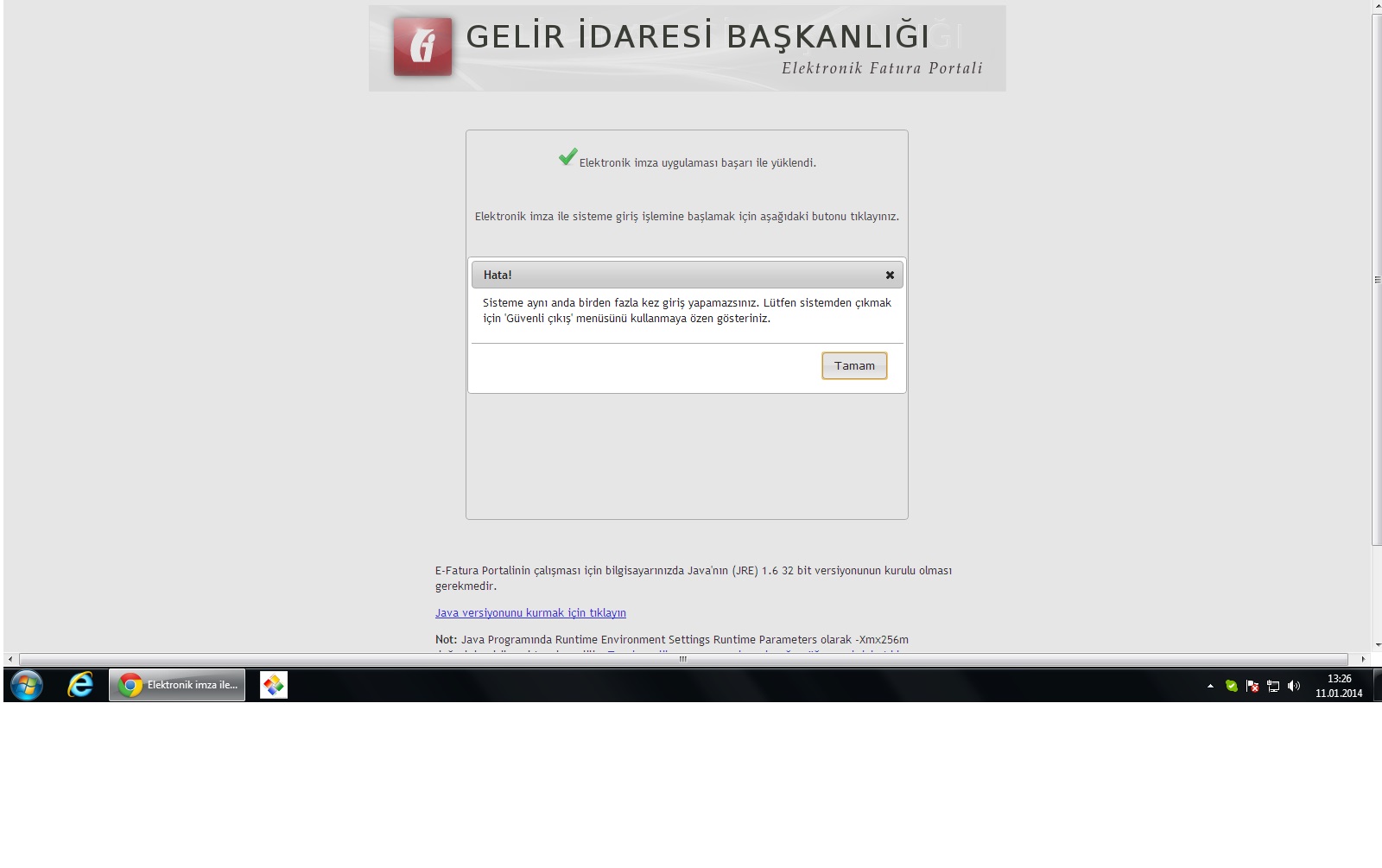 | Soru | Portala girmek istediğimde aşağıdaki ekranda çıkan hatayı veriyor.Bir önceki bağlantı penceresi kapandığınıdan "güvenli çıkış" seçeneğini bulamıyorum.Bilgisayarı yeniden başlatıp usb portunu değiştirdiğim halde sonuç yine aynı.Yardımcı olur musunuz?Ne yapmam gerekiyor? |