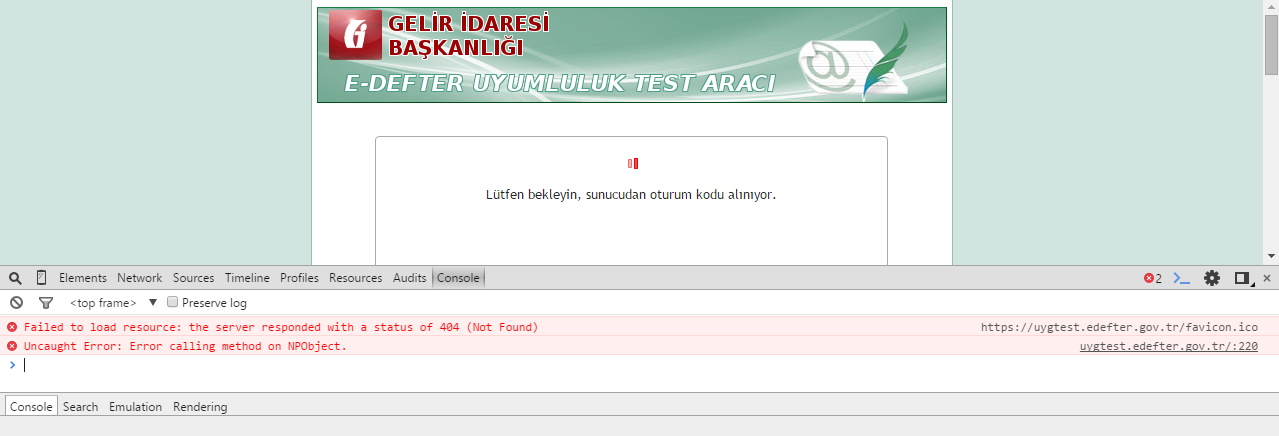 | Soru | Sayın ilgili, E-defter uyumluluk test aracına giriş yaparken "başla" butonuna basılmasının ardından ekteki hatayı almaktayız. Bu durumda nasıl bir yol izlenmelidir? İyi çalışmalar. | |||||||