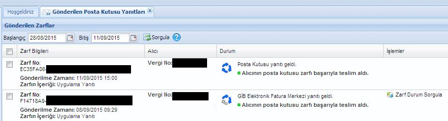 Merhaba, "Posta Kutusu yanıtı geldi. Alıcının posta kutusu zarfı başarıyla teslim aldı." ibaresi, 3 okun da mavi olduğu ve yeşil karenin bulunduğu durum, sürecin sorunsuzca tamamlandığını belirtir. "GİB Elektronik Fatura Merkezi yanıtı geldi. Alıcının posta kutusu zarfı başarıyla teslim aldı." ibaresi, 2 okun mavi olduğu, yeşil karenin ve "Zarf Dorum Sorgula" düğmesinin bulunduğu durum ise zarfın iletimi sırasında bir sorunun oluşmuş ancak sonrasında giderilerek zarfın alıcısına başarıyla iletildiği ve nihai sürecin sorunsuzca tamamlandığını belirtir. Sonuçta iki durum arasında fark olmadığını düşünebilirsiniz. İyi günler. |