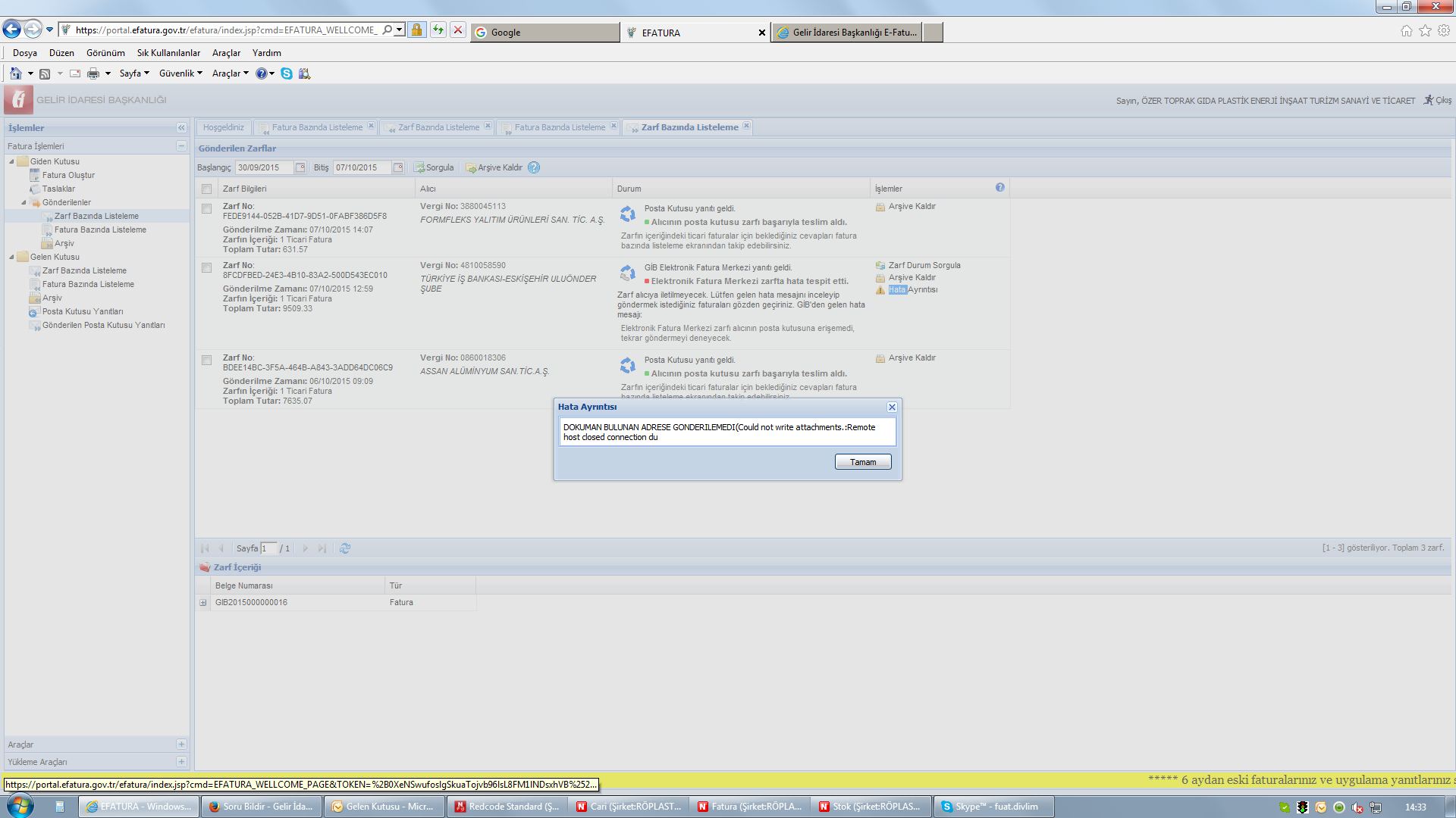 merhabalar, ilgili zarf alıcı firmaya başarılı şekilde gönderilmiş olarak sistemde görünmektedir. tekrar kontrol ediniz. |