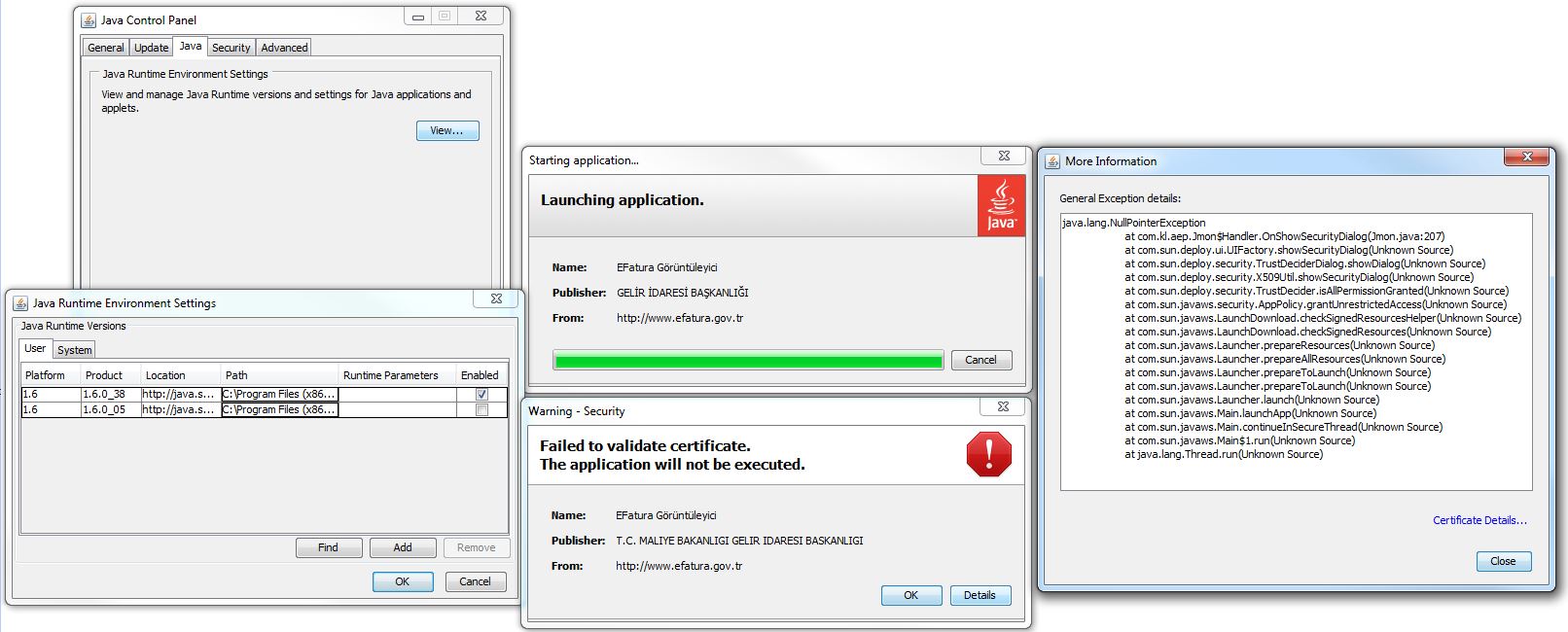 | Soru | Merhaba, Diğer sorunları da inceleyip önerdiğiniz Java Versiyonu kontrolü, Güncelleştirmeleri kapatma gibi işlemleri yaptıktan sonra Halen eFatura görüntüleyici çalışmıyor. Ekte Hata detayları ve Java version bilgileri mevcut. Yardımcı olursanız sevinirim. Kullandığımız sistem Win7 64bit | |||||||