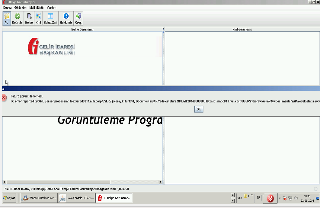 | Eklenen Dosyalar | FaturaGörüntüleyici Hatası.png [^] (217,791 Bayt) 2014-01-22 10:26