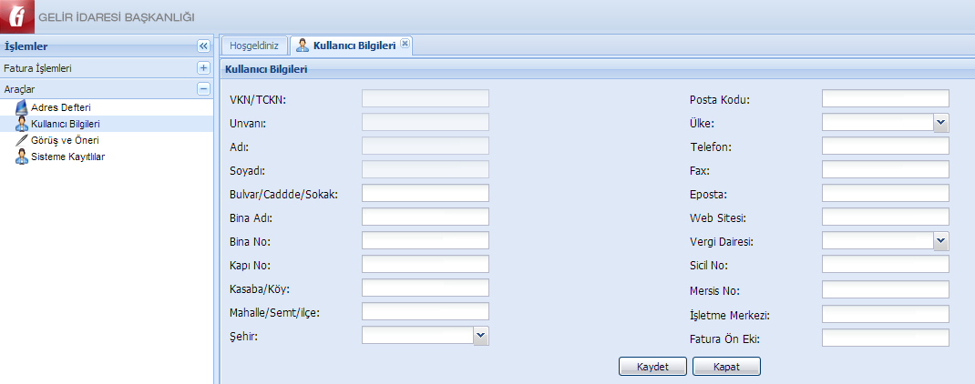 | Konu | 0003450: GİB Portali - Kullanıcı Bilgileri Menüsü | |||||||