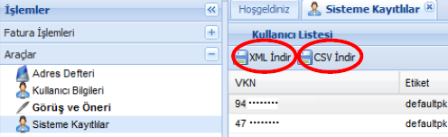 Portal üzerinden e-Fatura Uygulamasına Kayıtlı Kullanıcılar Listesine ulaşabilmek için şu adımları takip ediniz: - sol menüden “Araçlar” menüsüne tıklamanız gerekmektedir. - Sisteme Kayıtlılar bölümü seçilmelidir. (Birden fazla sayfa bulunmaktadır.) - Sisteme Kayıtlılar listesinde yer alan mükelleflerin şu bilgilerine ulaşılabilmektedir: o Vergi Numarası, o Etiket, o Unvan/Adı Soyadı, o Tip (Kamu/Özel), o Kayıt Zamanı. Sisteme Kayıtlılar listesini XML veya CSV formatlarında bilgisayarınıza indirebilirsiniz. (CSV uzantılı dosyayı Microsoft Excel programı ile açabilirsiniz.) Ancak bu durumda listenin güncelliğini kontrol etmeniz, fatura göndermeden önce listeyi indirip bakmanız gerekmektedir. Çünkü listedeki kullanıcılara ait bilgiler (firma etiketleri de) sürekli güncellenmektedir. Bu forum sitesinde yazılanlar özelge niteliği taşımamakta olup sadece mükelleflerimize yardımcı olma amaçlıdır. |