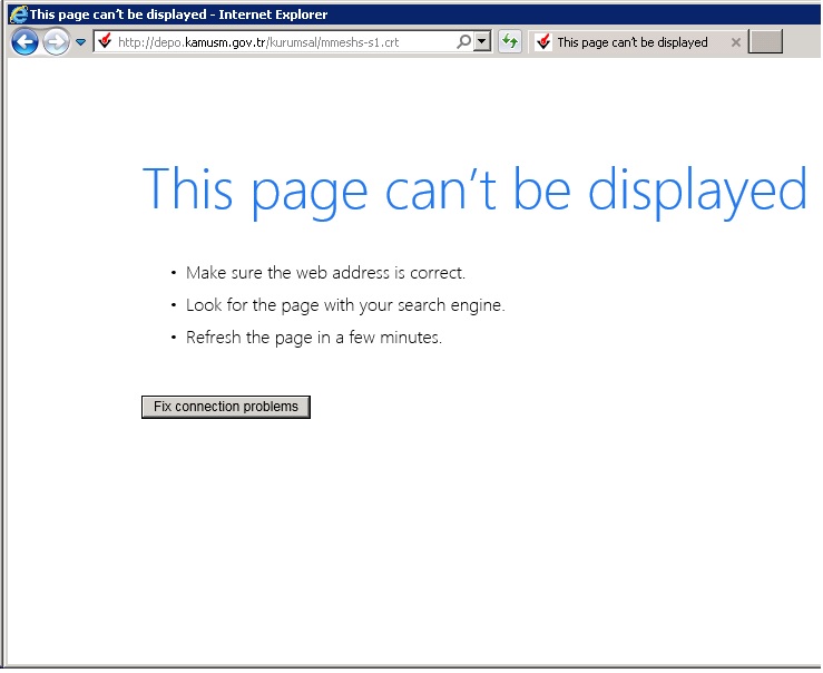 | Konu | 0041009: http://depo.kamusm.gov.tr/kurumsal/mmeshs-s1.crt [^] erişim problemi | |||||||