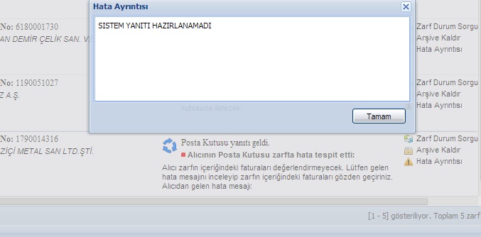 | Konu | 0004696: SISTEM YANITI HAZIRLANAMADI | |||||||