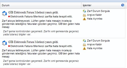 | Konu | 0000487: Zarf Şema Kontrolünden Geçemedi Hatası | |||||||