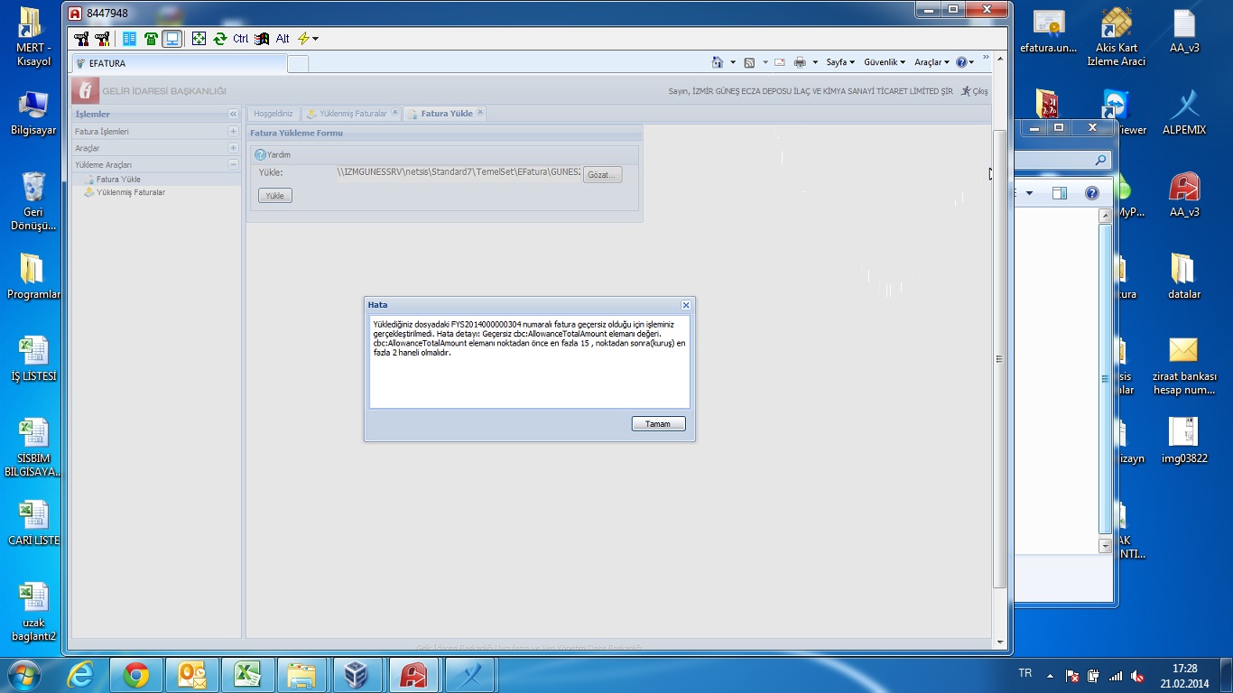 | Konu | 0005195: E-fatura yüklerken hata | |||||||