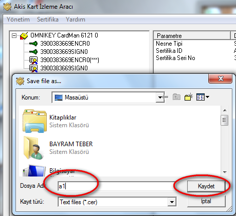 Merhabalar; Akis kart okuyucu'ya girip sertifikaların ekran görüntüsünü gönderebilir misiniz? İyi çalışmalar.. |