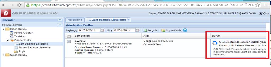 | Soru | iyi günler ; test portalında 3 gündür yaşadıgımız sıkıntılar bitmedi, test portalını bitirebilmek için neredeyse her yolu denedik, son gelen uyarı mesajımız aşşağıdaki gibidir , kesitigimiz fatura iletilmiyor fakat bu uyarıyı veriyor ekran görüntüsünüde yolluyorum, yardımcı olursanız sevinirim teşekkürler. '''GİB Elektronik Fatura Merkezi zarfı ve içeriğindeki dökümanları incelemeyi tamamladı. Zarf en kısa sürede alıcının posta kutusuna iletilecek.''' | |||||||
