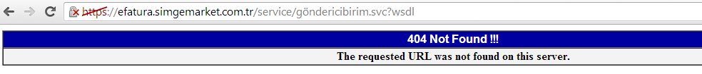 Göndericinin gönderdiği zarflarının durumlarını sorgulaması gerekmektedir. Bu zarfın durumunu sorguladığınızda hata aldığını görebilirsiniz: 1215 DOKUMAN GONDERIMI BASARISIZ. TERKAR GONDERME SONLANDI.(Could not write attachments.:Received fatal alert: bad_record_mac) Sisteminize erişimde sorun bulunmaktadır. Web servis uç noktanıza ulaşılamamaktadır (eke bakabilirsiniz). Sisteminizi kontrol ediniz. |