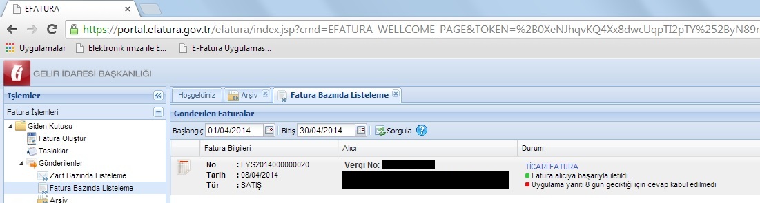 | Konu | 0007431: E-Faturaya Cevap Verme Süresi - Uygulama yanıtı 8 gün geciktiği için cevap kabul edilmedi | |||||||