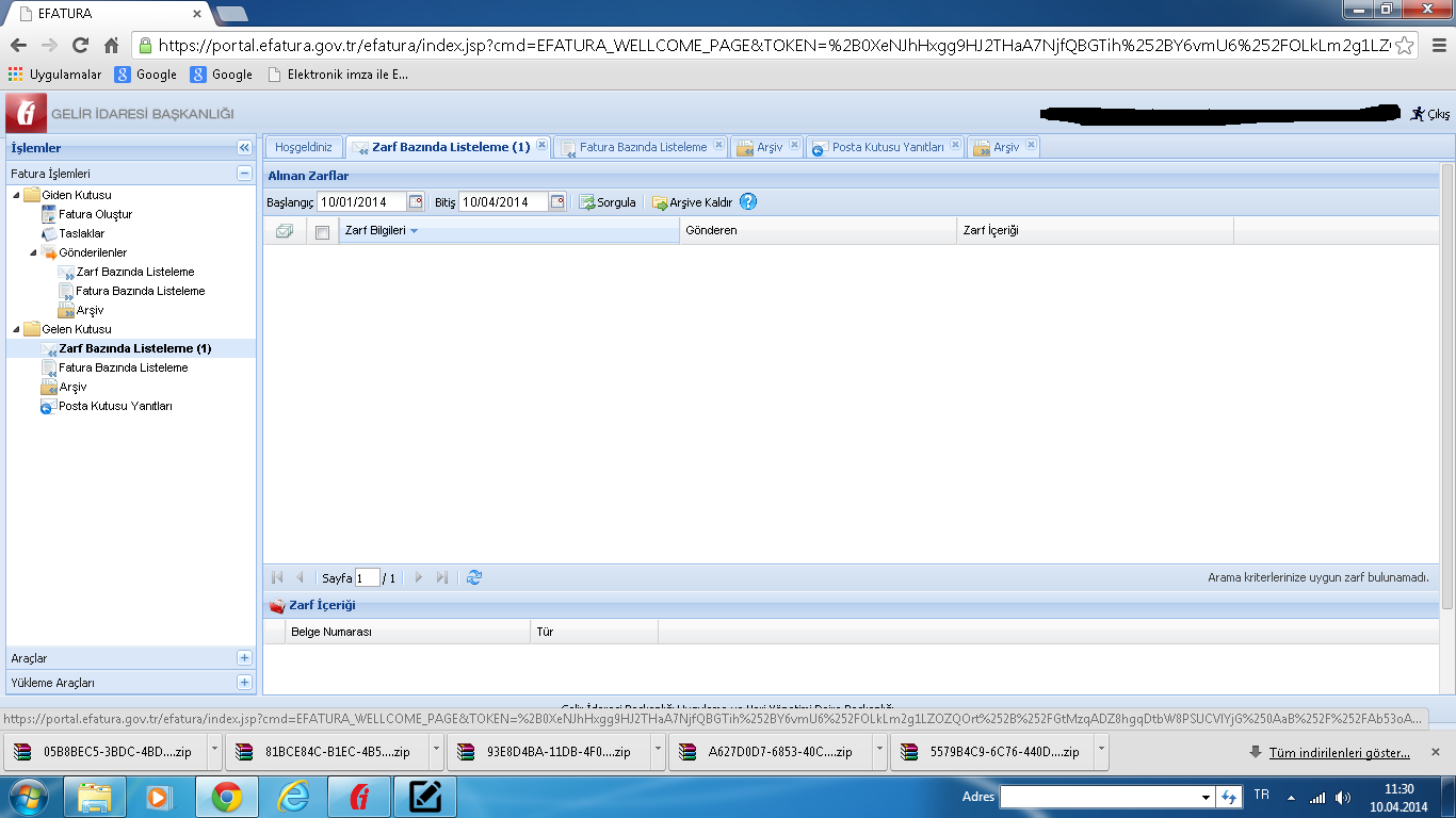 | Soru | gelen kutusu zarf bazında listeleme bölümünde 1 adet zarf işareti var fakat alınan zarflar bölümü boş görünüyor | |||||||